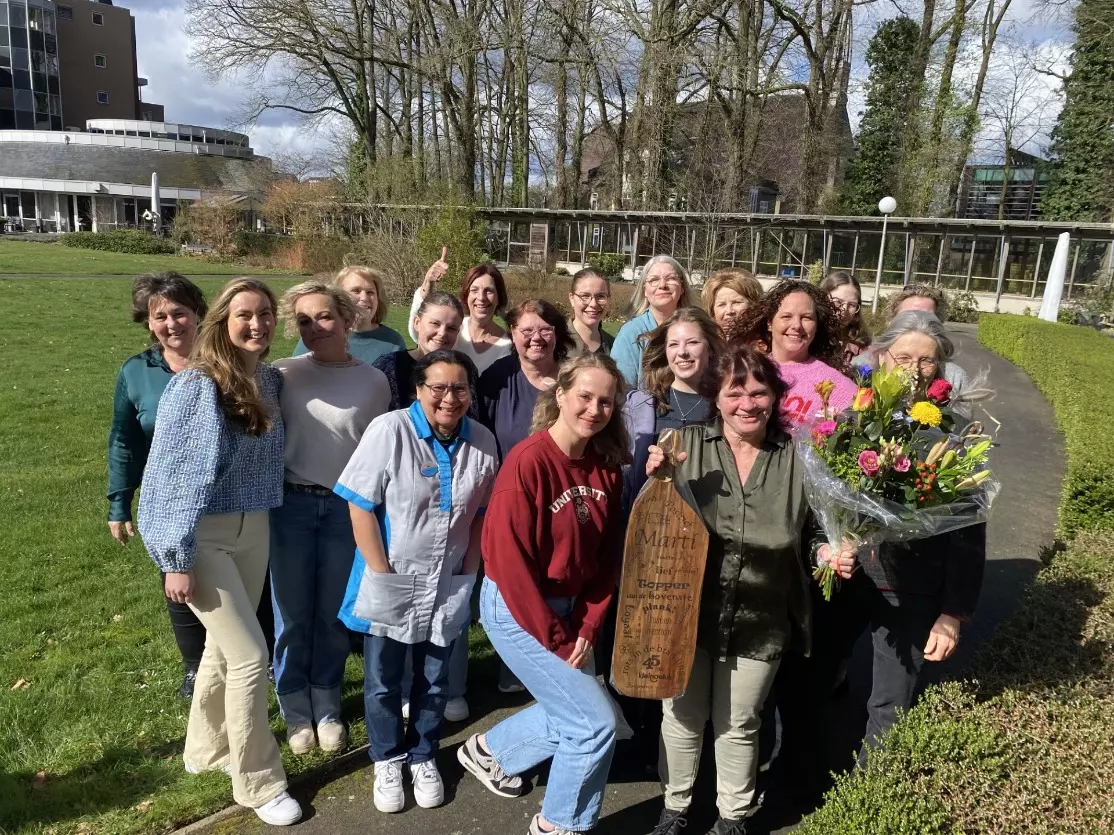 Ook na 45 jaar stopt Marti nog niet met werken. “Ik ga wat minder werken, maar stoppen hoef en wil ik nog niet. Ik hoop dat mij nog een mooie toekomst gegeven is. Samen met mijn man een campertje kopen en reizen, daar droom ik van. Voorlopig blijf ik nog verbonden aan de zorg, daar voel ik mij nog steeds thuis!”